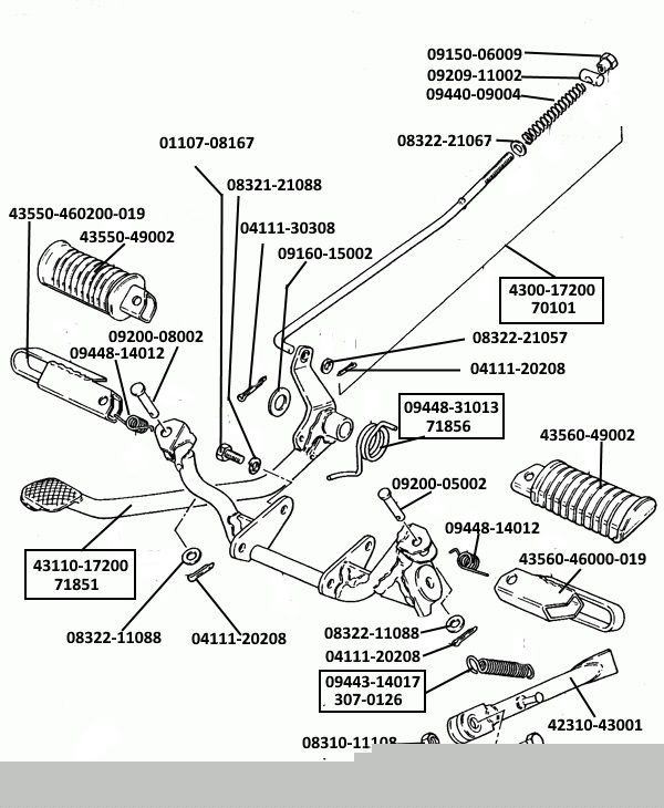 Takaisin PV 50 hajoituskuva valikkoon Jalkatapit, jarrupoljin, seisomatuki Copyrighted Material © PY, 2018